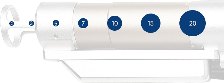 • Only one zoom handpiece adjusts 7 different spot sizes without requiring changing handpiece or handpiece guide.