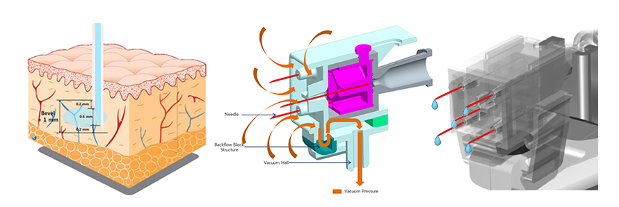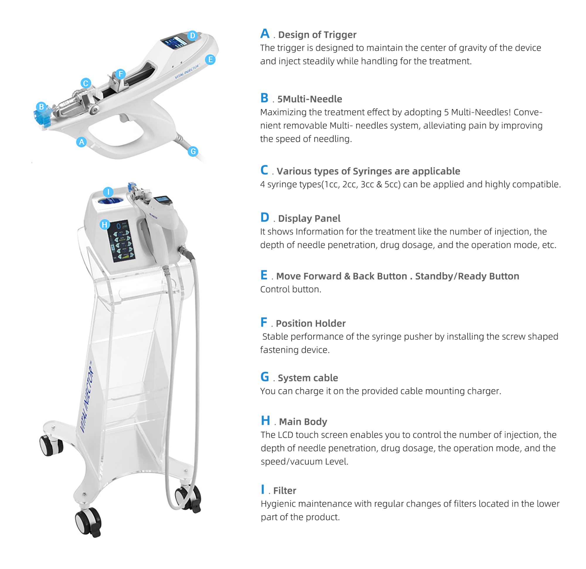 Vital Injector is a non-invasive intradermal injecting device using a syringe. It maximizes the treatment effect and shortens the procedure time by adopting 5 multi-Needles.